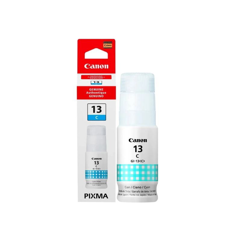 Botella de tinta Canon GI-13 color cian, para sistemas de tinta continua profesional.
