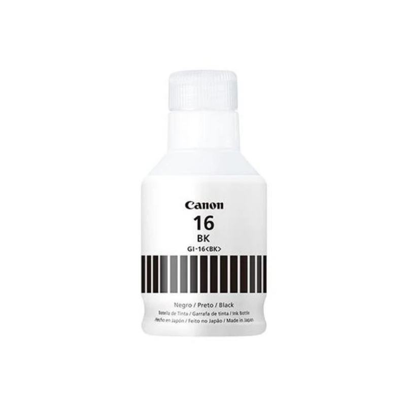 Botella de tinta Canon GI-16 color negro, para sistemas de tinta continua de alta capacidad.