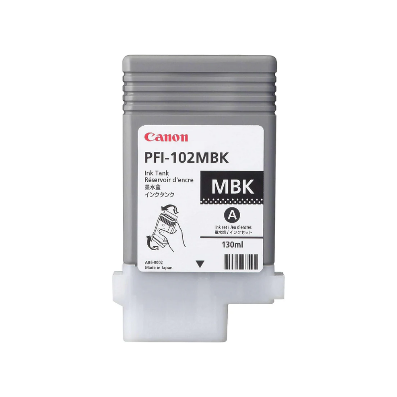 Cartucho de tinta Canon PFI-102MBK negro mate 130ml, para impresión profesional.