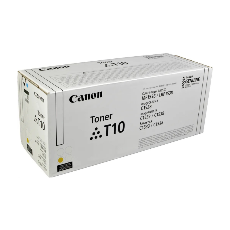 Toner original Canon T10 color amarillo, para impresoras láser de alta gama.